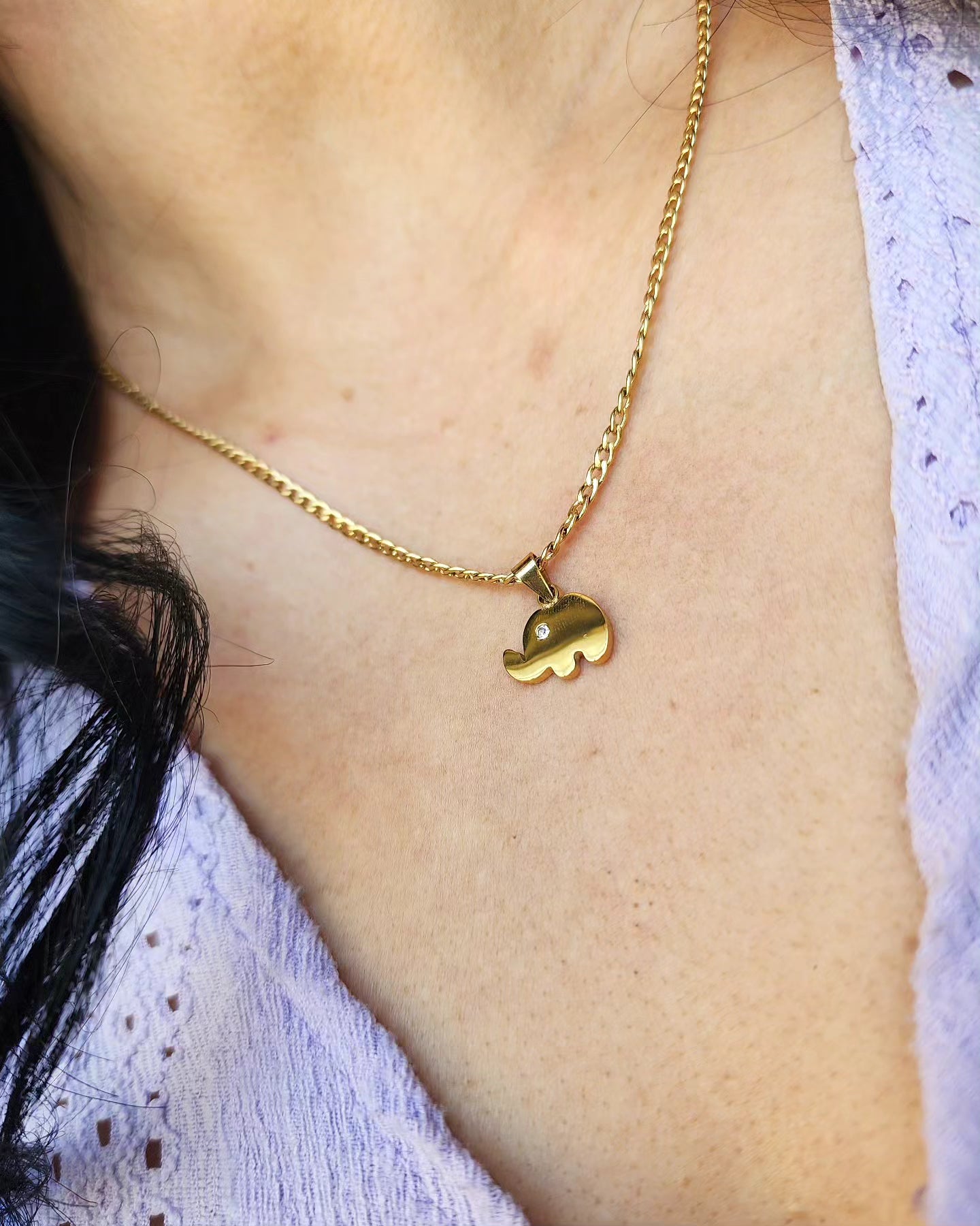 Con dije de elefante en acero inoxidable de 1cm