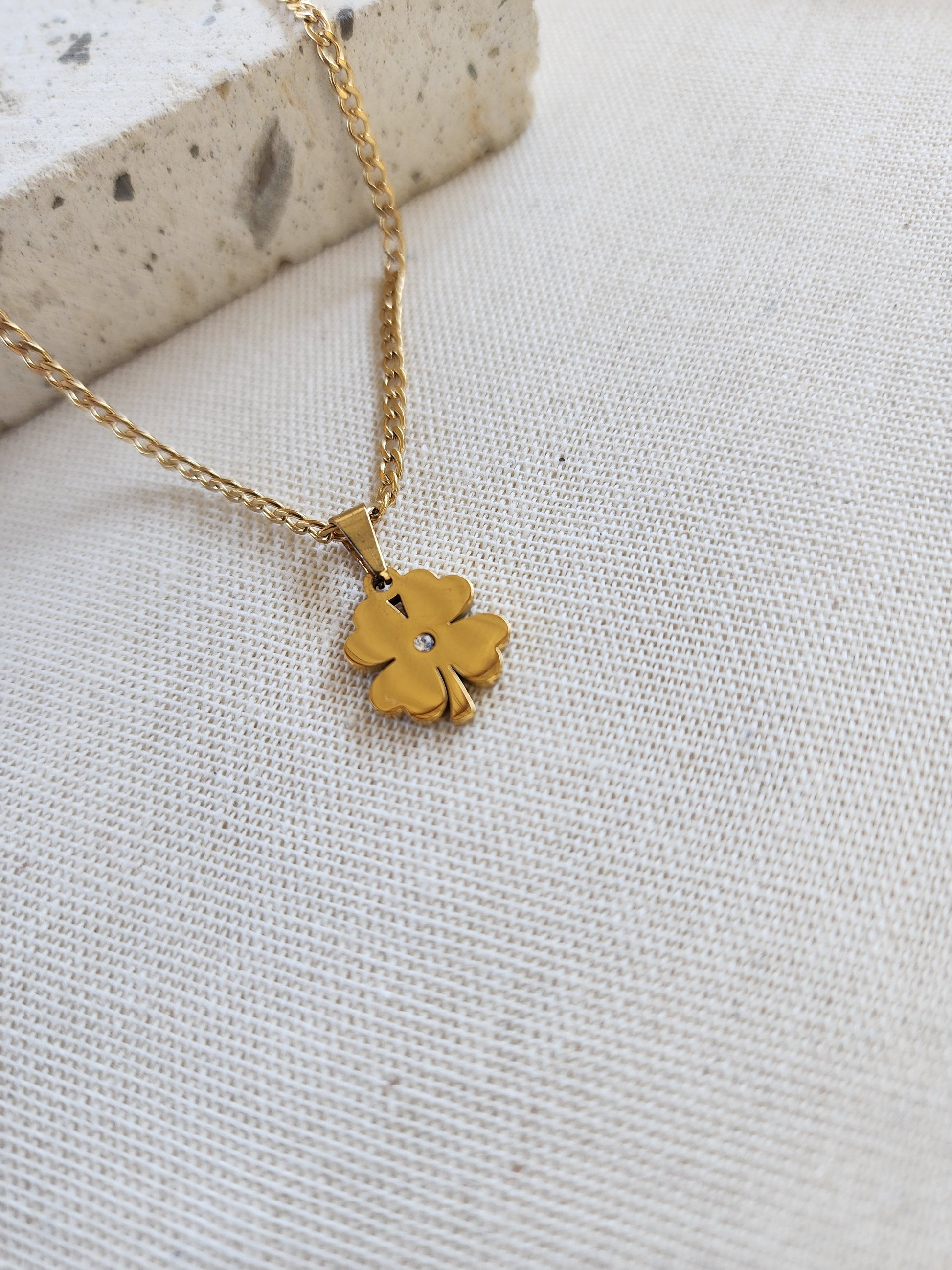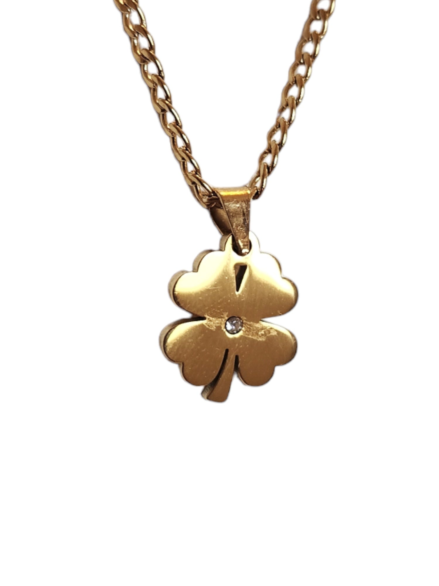 Con dije de trebol de 4 hojas también en acero inoxidable ✨ y 1cm de largo