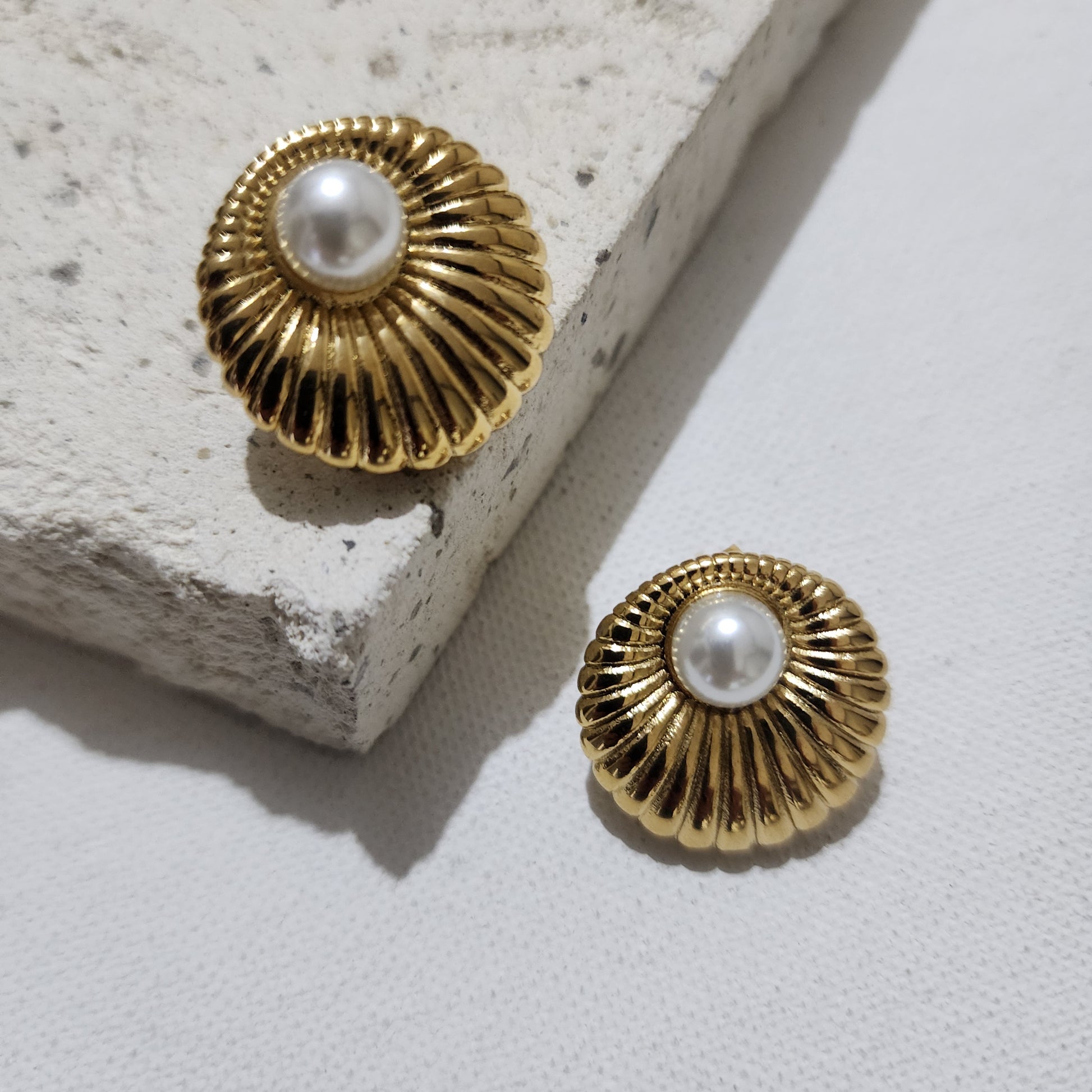 Arete redondo con textura de acero inoxidable y perla