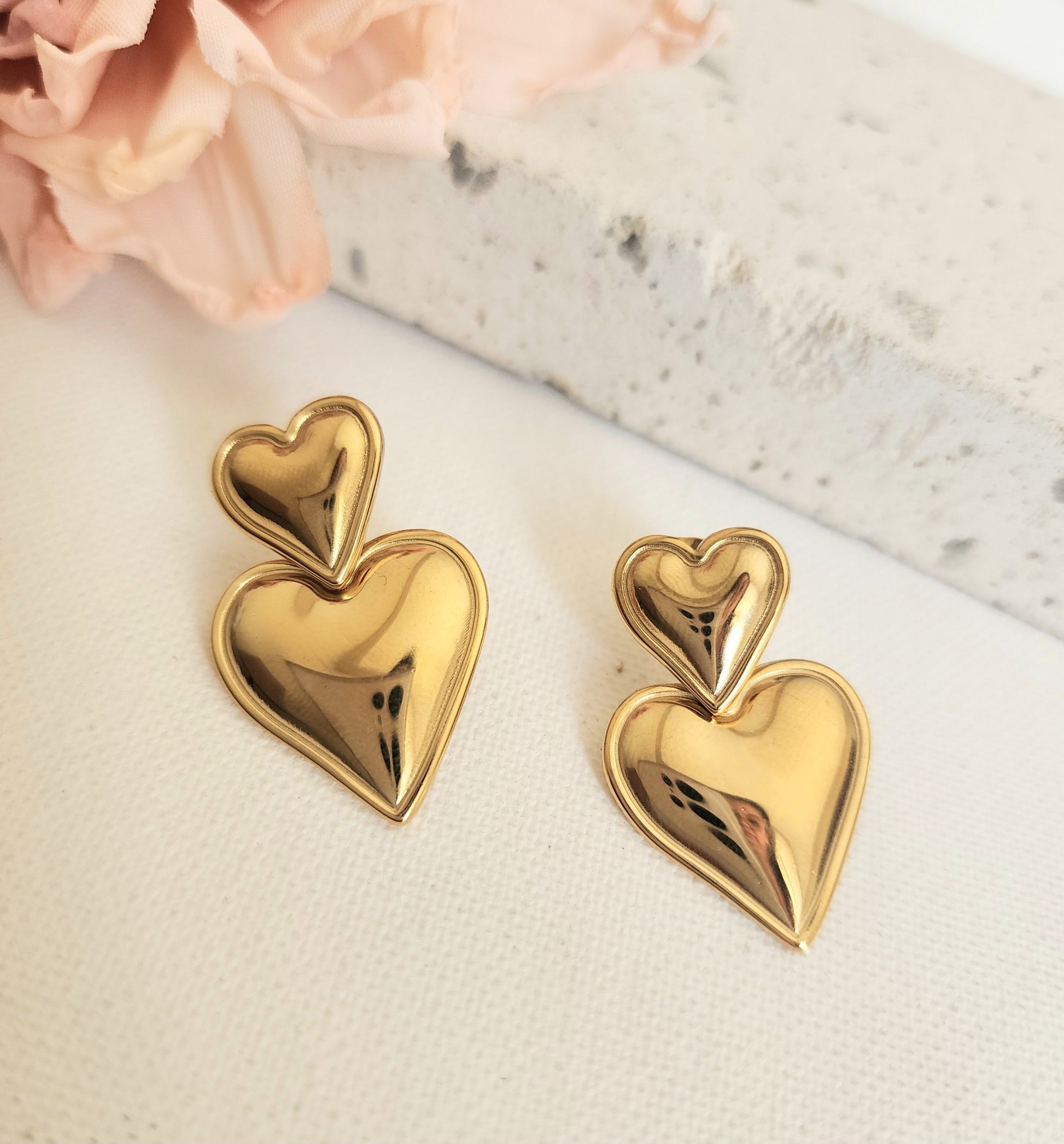 Aretes de doble corazón ♥ ♥️ en acero inoxidable